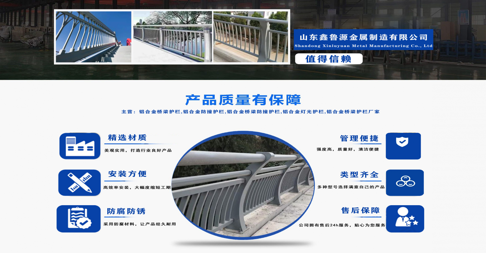 山東鑫魯源金屬制造有限公司主要經(jīng)營:鋁合金橋梁護(hù)欄,鋁合金防撞護(hù)欄,鋁合金橋梁防撞護(hù)欄,鋁合金燈光護(hù)欄,不鋁合金橋梁護(hù)欄廠家,環(huán)波梁橋梁護(hù)欄,環(huán)波梁防撞護(hù)欄。質(zhì)量可靠、經(jīng)濟(jì)實(shí)用的顯著特點(diǎn)。公司為客戶提供可靠售后保障,堅(jiān)持“以品質(zhì)立足、服務(wù)求發(fā)展”,愿與各界朋友精誠合作、攜手發(fā)展! 服務(wù)優(yōu)勢:真誠的服務(wù)理念、完善的服務(wù)體系。公司專業(yè)力量充足;工程案例眾多、從業(yè)經(jīng)驗(yàn)豐富;公司以可靠質(zhì)量的產(chǎn)品,合理的價格,完善的售后服務(wù),能夠滿足市場各個企業(yè)的需求。 企業(yè)精神:執(zhí)著追求 持續(xù)創(chuàng)新執(zhí)著追求,就是堅(jiān)持不懈、堅(jiān)定從容,專注于自己的事業(yè),把能做的事情做好,不斷克服困難、把握機(jī)遇,贏得未來。 持續(xù)創(chuàng)新,就是生命不息、創(chuàng)新不止,通過持續(xù)實(shí)施技術(shù)創(chuàng)新、管理創(chuàng)新、市場創(chuàng)新,獲取持續(xù)的競爭優(yōu)勢。...